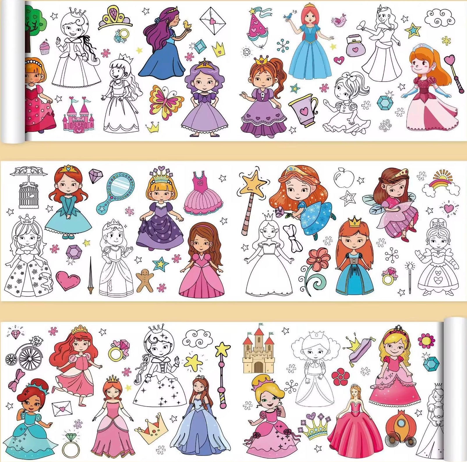 3 meters of fun with endless characters and scenes to color.